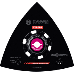 Hohe Lebensdauer beim Schleifen von verschiedensten Materialien! Die Delta-Form ermöglicht das Schleifen von Ecken und Kanten Kleine, aber harte Schleifarbeiten zum Entfernen von altem Material und zum Vorbereiten von Oberflächen sind mit herkömmlichen Schleifmaschinen oder von Hand fast unmöglich zu erledigen. Selbst wenn du die Oberfläche erreichen kannst, reißt das Schleifpapier ein. Mit der EXPERT Sanding Plate kannst du jedoch mit deinem oszillierenden Multifunktionswerkzeug Ecken erreichen und schwierige Materialien schleifen. Die groben, offenen Körner des RT2 (Körnung 20) eignen sich am besten zum Entfernen von Mörtel hinter Fliesen, von Teppichkleber oder für die Grobbearbeitung von Holz. Der RT4 (Körnung 40) eignet sich am besten zum Entfernen von dickem Lack, er kann aber auch mit Mörtel und Kleber umgehen. Der RT6 (Körnung 60) ist der Lackspezialist, während der RT10 (Körnung 100) ideal zum Schleifen und Vorbereiten sauberer Holzoberflächen geeignet ist. Überragende Lebensdauer dank Bosch Carbide Technology